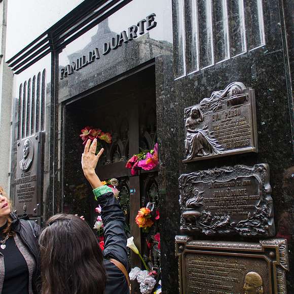 María Eva Duarte de Perón, also known as Evita, is undeniably the best-known persona of Argentina, making her an excellent lens through which to understand this city. On this 3-hour Recoleta Cemetery Tour, exploring Evita in Buenos Aires through Retiro and Recoleta neighborhoods, we'll join a local historian to explore the world of midcentury Argentina and discover Evita: her charisma, determination, and marriage to politician Juan Perón that greatly influenced the history of her country. Then we’ll visit her final resting place, Recoleta Cemetery, and tell this ironic story of her love/hate relationship with her neighbors. Like tango, it's hard to understand Buenos Aires without grappling with the Peróns.